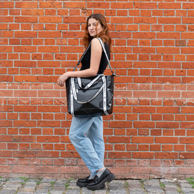 Diseñado a partir de silobolsa reciclada, el Bolso Bahía ofrece impermeabilidad, fácil limpieza y resistencia al desgarro, convirtiéndolo en una opción práctica y duradera.